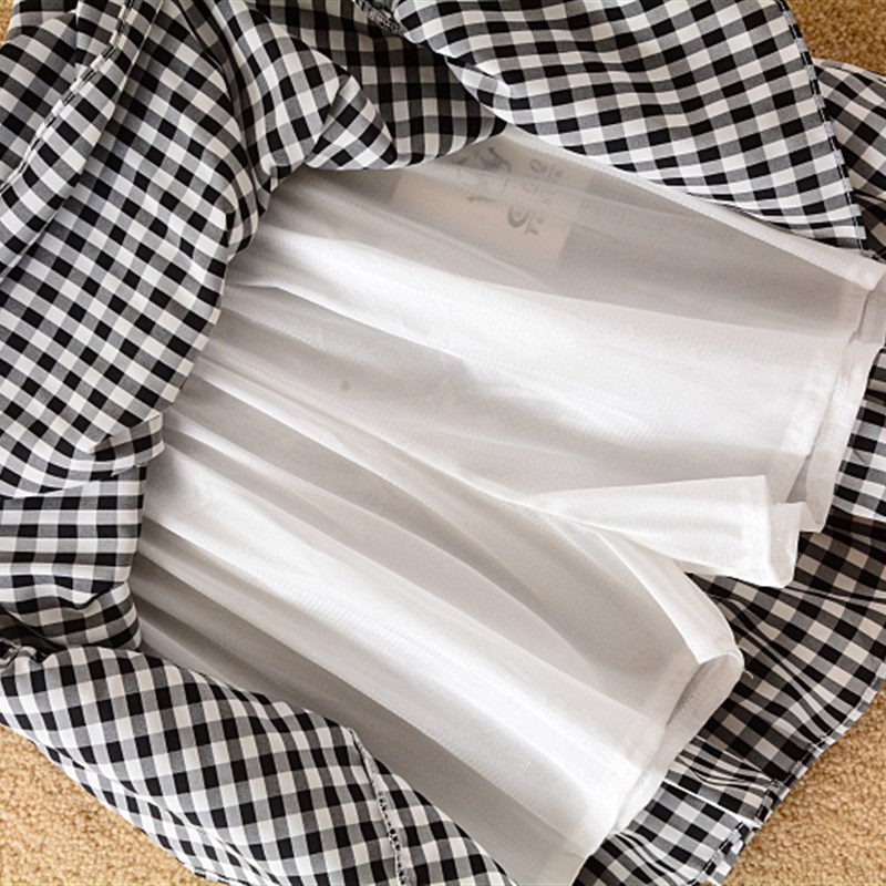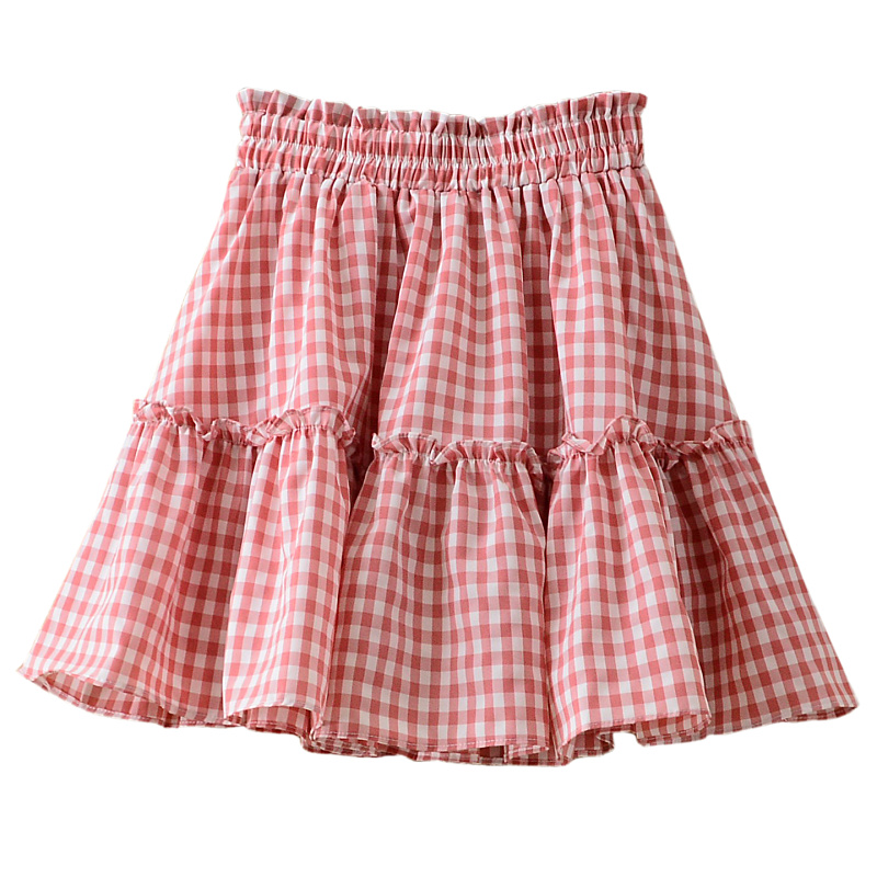 2021夏季新款学院风高腰百褶蛋糕短裙女a字显瘦小格子蓬蓬半身裙