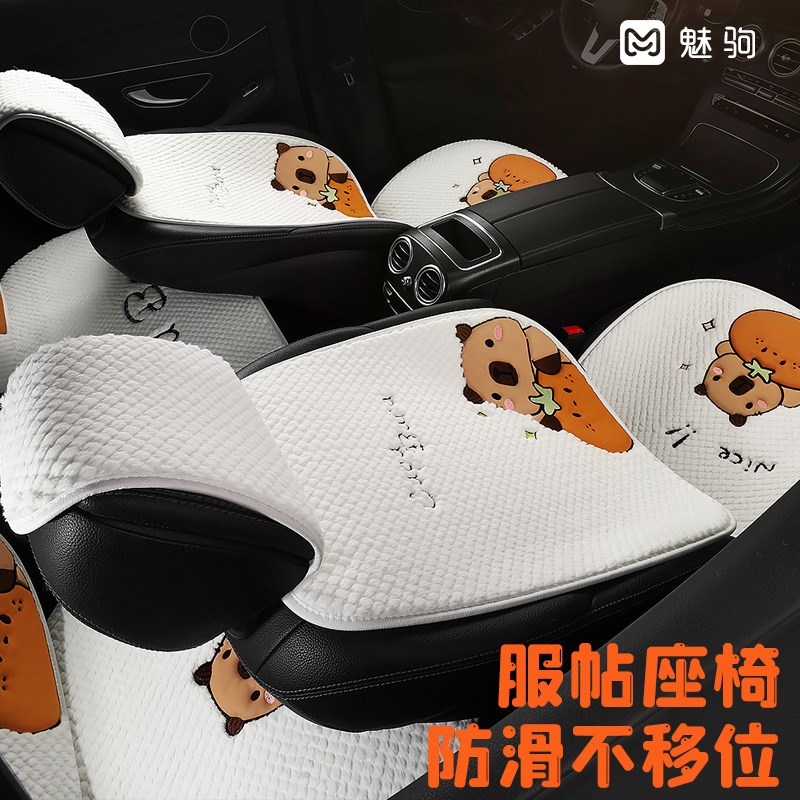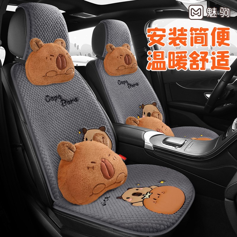 卡通汽车坐垫冬季毛绒半包座椅套网红可爱女款冬天保暖.后排车座
