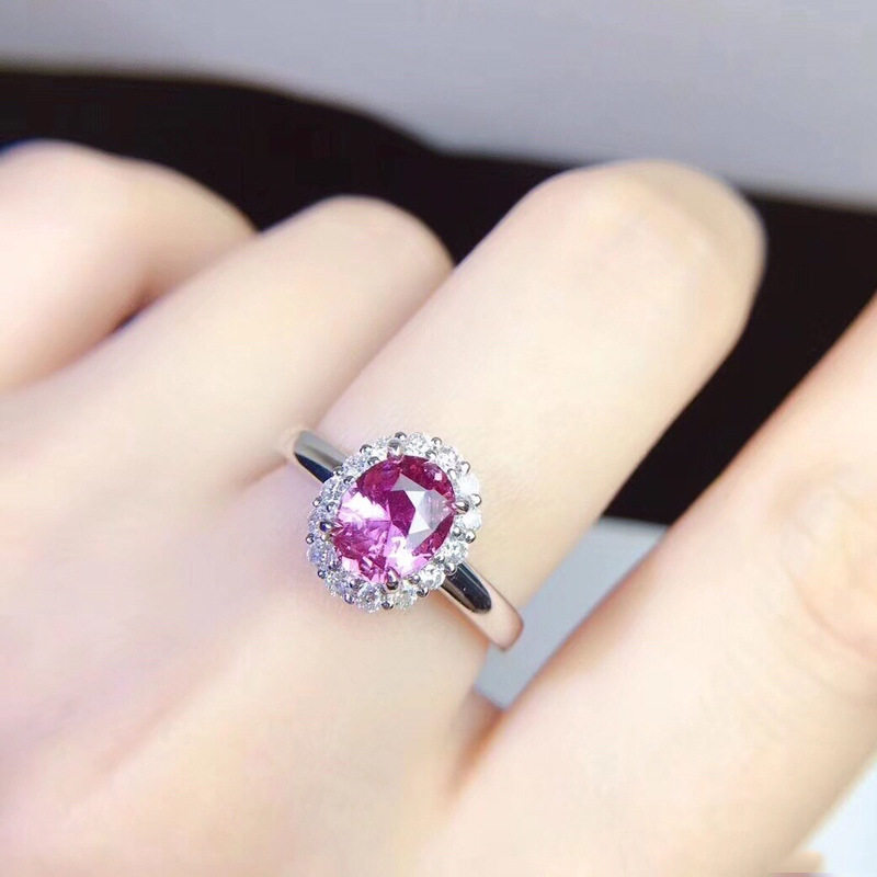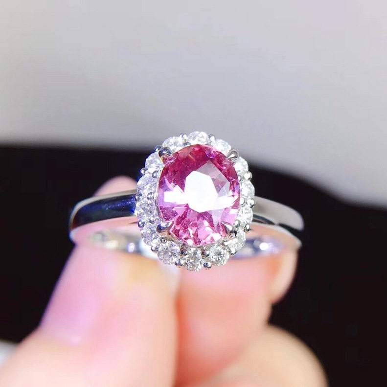 欧美高端珠宝少女简约甜美仿真粉红碧玺椭圆形镀白金戒指结婚钻戒