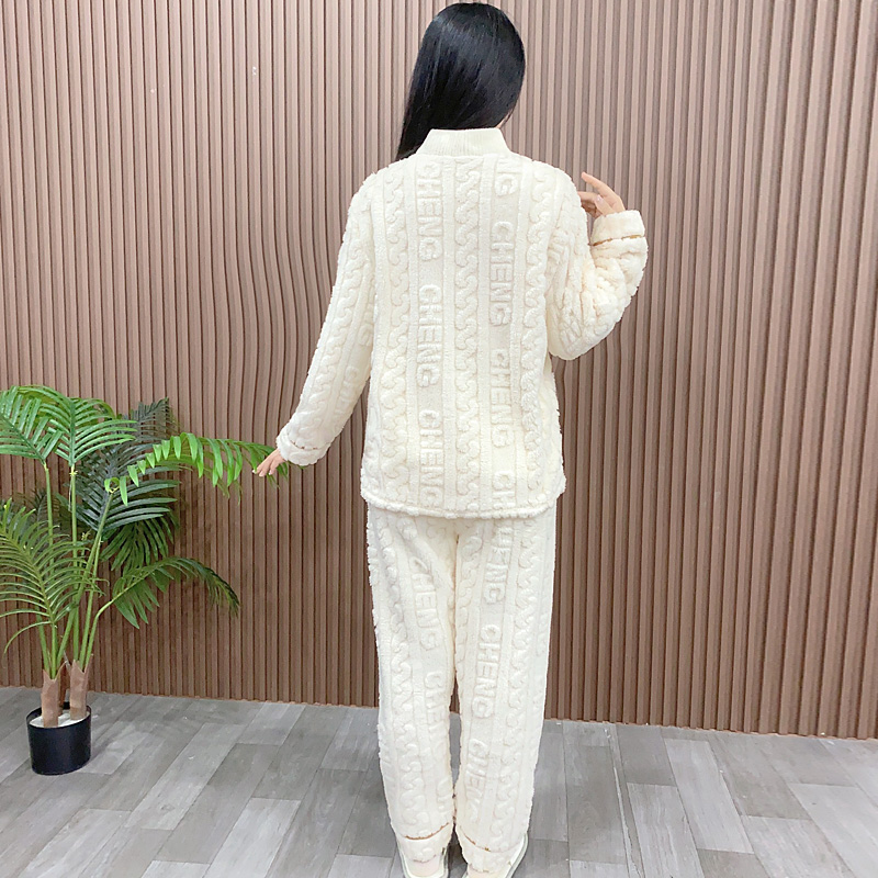 秋冬季睡衣女长袖法兰绒冬天加厚珊瑚绒保暖牛奶绒家居服套装Y147