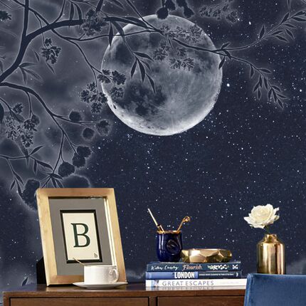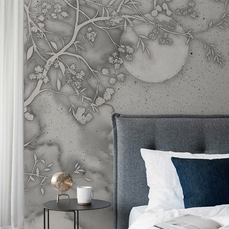 月影 个性定制壁画 新中式古典圆月树影 卧室客厅沙发背景墙壁纸