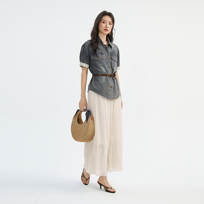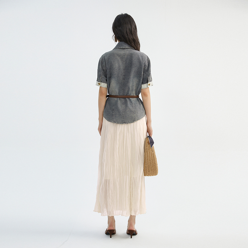 记忆的起点时尚套装牛仔外套半身裙两件套2025夏季新款69AX80100
