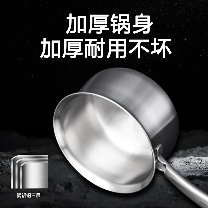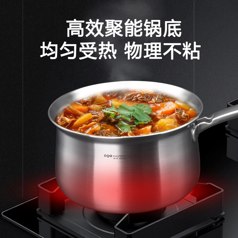 OQO欧克欧316不锈钢奶锅小汤锅家用电磁燃气无涂层宝宝辅食加厚