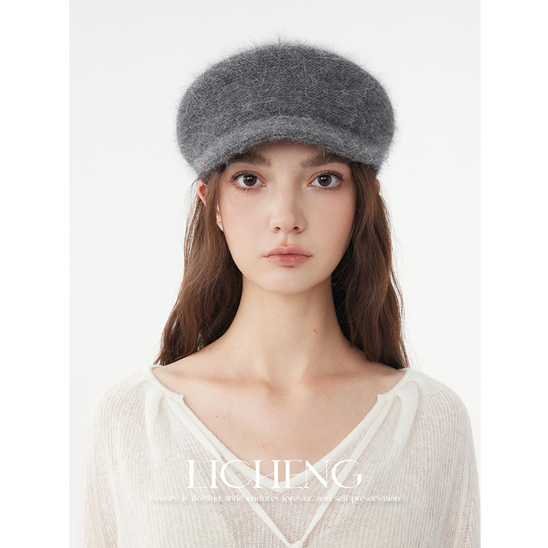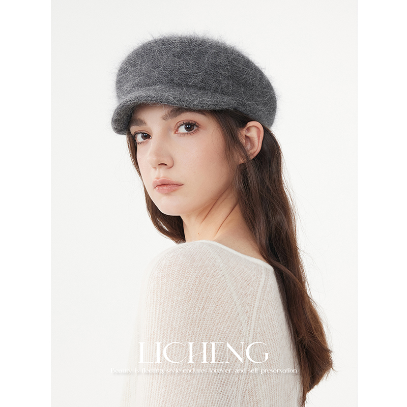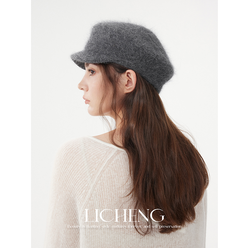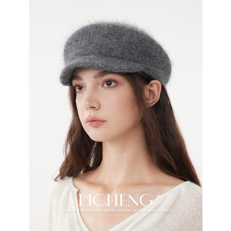 礼诚 高密度长绒兔毛报童帽女秋冬柔软保暖针织贝雷帽时髦鸭舌帽