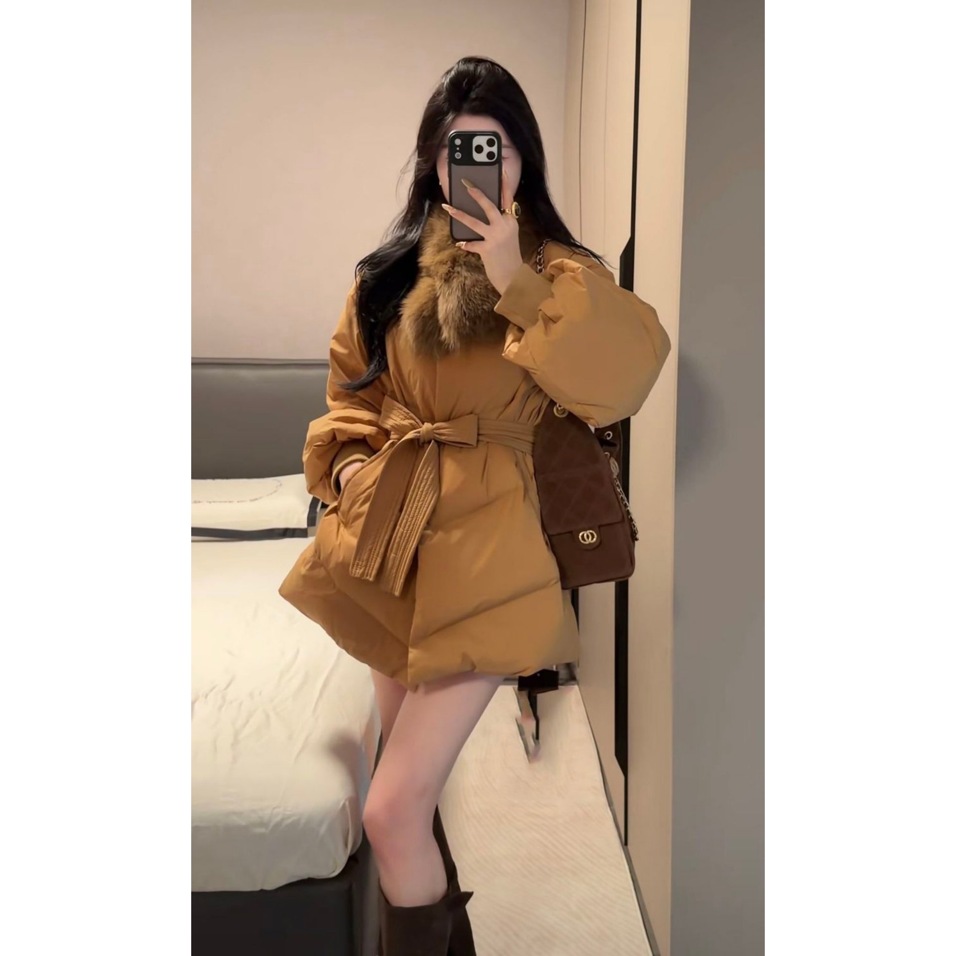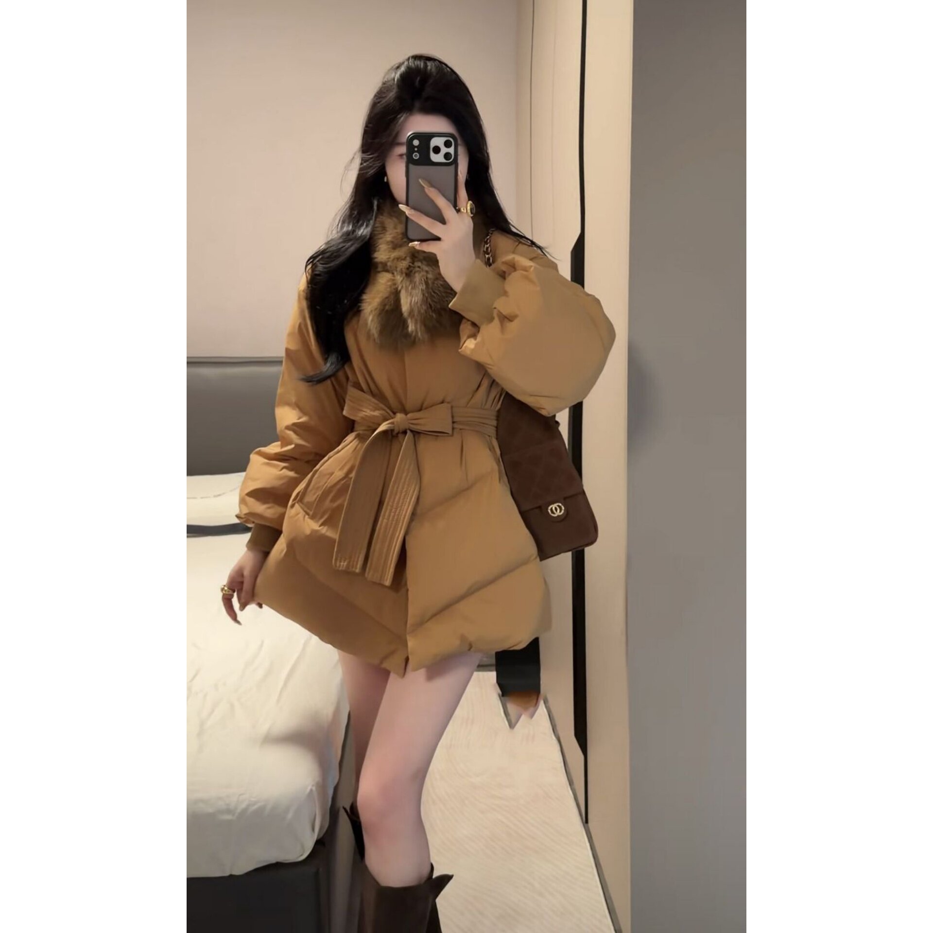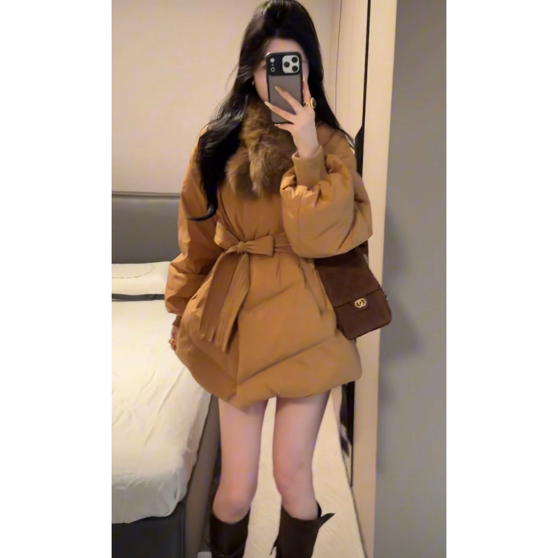 小香风韩版棉服羽绒服女中长款狐狸毛领收腰加厚外套高级感面包服
