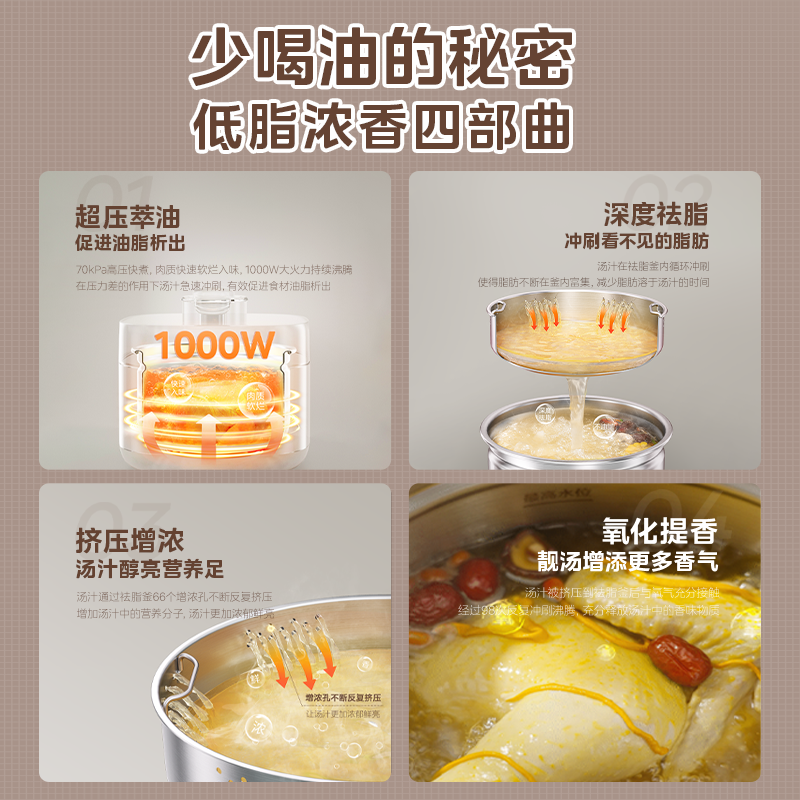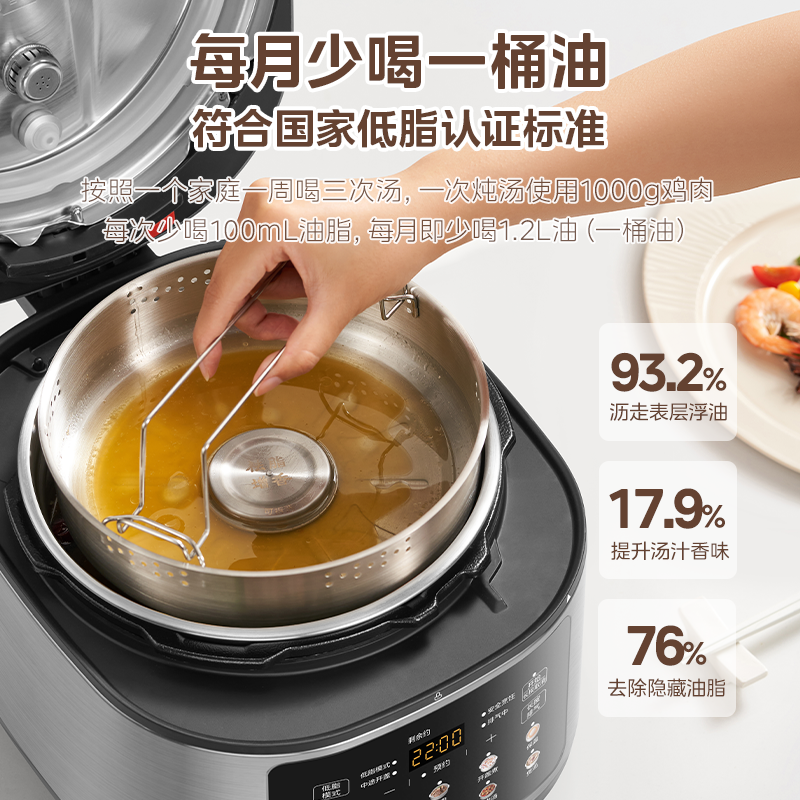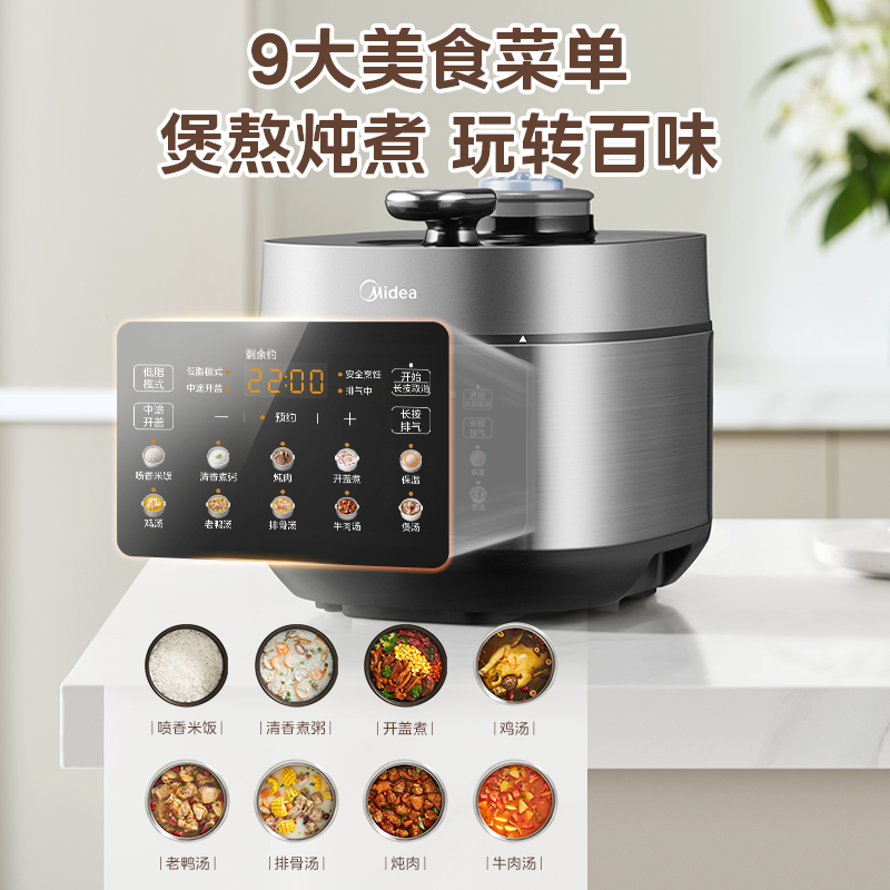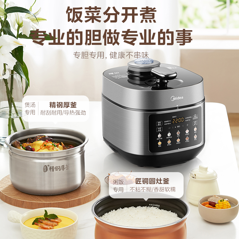 美的低脂浓香电压力锅家用新款不锈钢大容量高压锅官方旗舰店正品