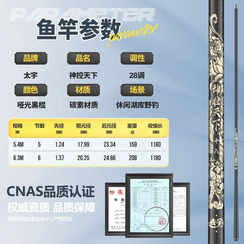 威海台钓竿28调4.5米6.3/7.2米碳素鱼竿超轻超硬鱼杆手竿