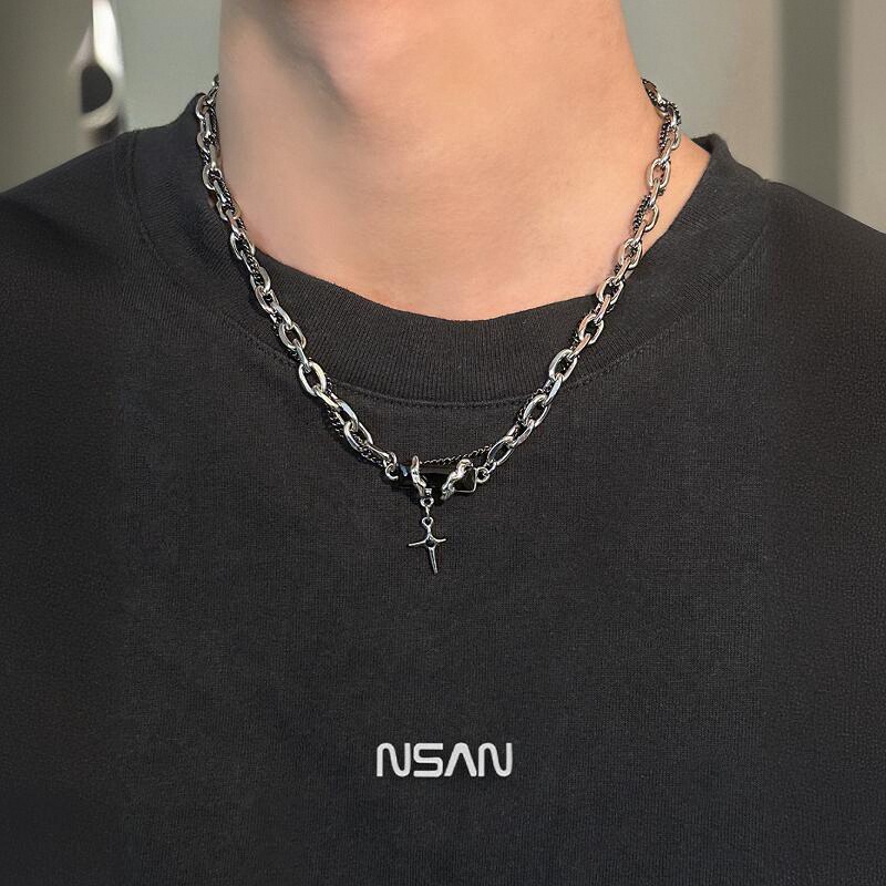 欧美嘻哈钛钢十字架吊坠项链男潮牌百搭个性简约毛衣链女配饰