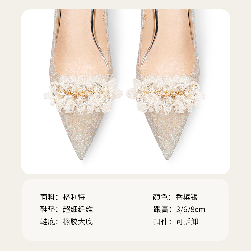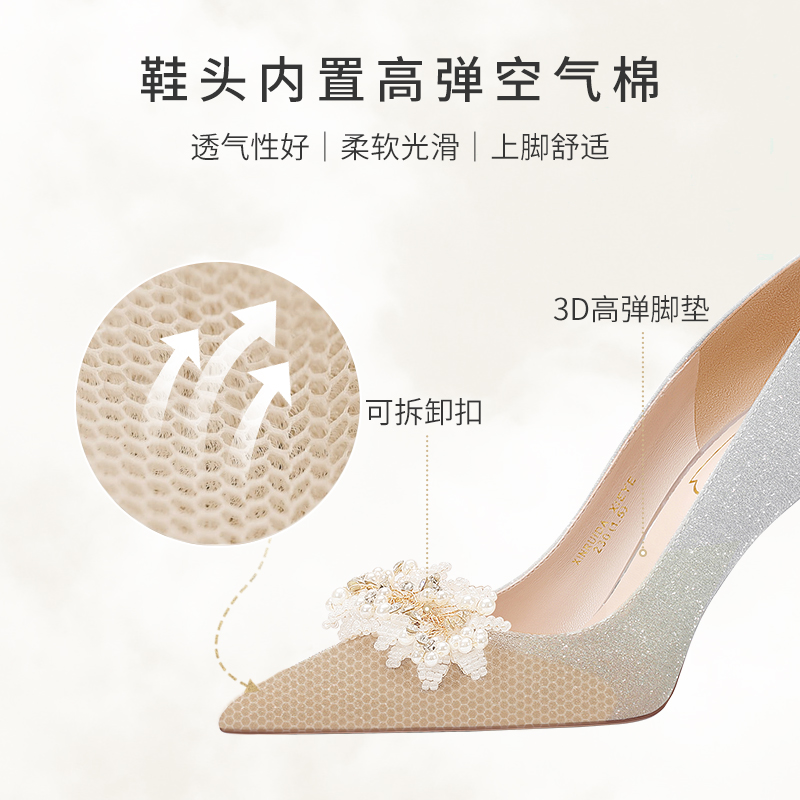 爱丽拉新娘婚鞋女2025春季新款禾秀主婚纱两穿法式水晶新娘高跟鞋