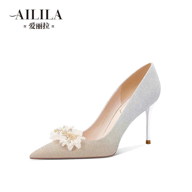 爱丽拉拼色高跟婚鞋可拆卸扣饰