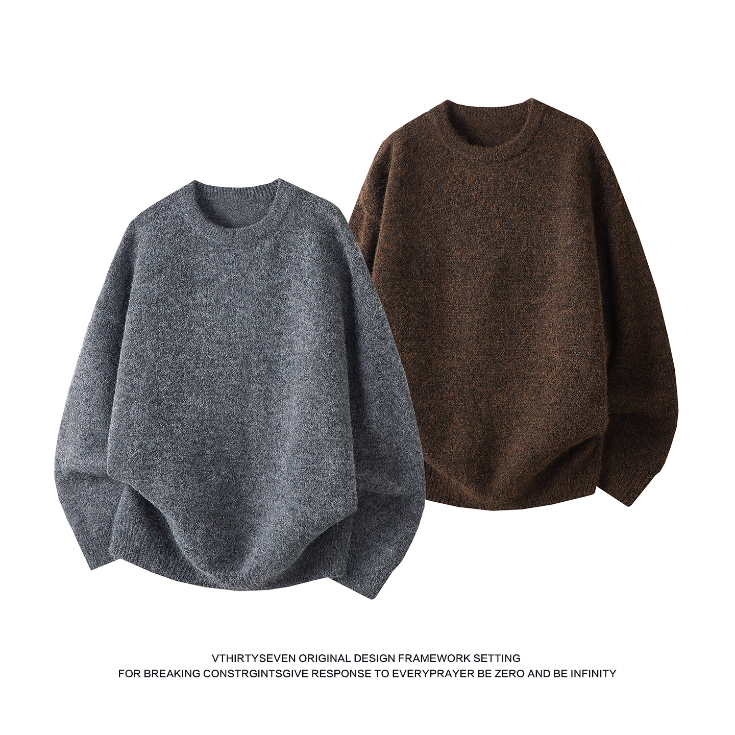 V37美式美拉德棕色慵懒风圆领针织衫男春季宽松休闲百搭毛衣外套