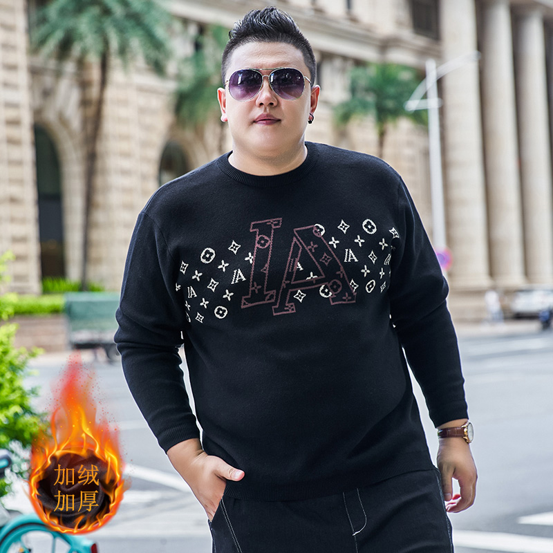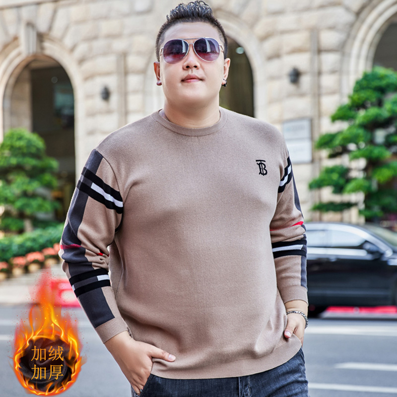 毕蒙特大码套头针织衫加绒加厚宽松休闲毛衣胖子线衣肥佬男士秋冬