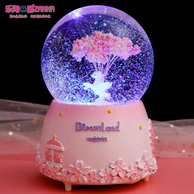 梦幻樱花水晶球音乐盒雪花天使跳舞女孩旋转八音盒夜灯女生日礼物