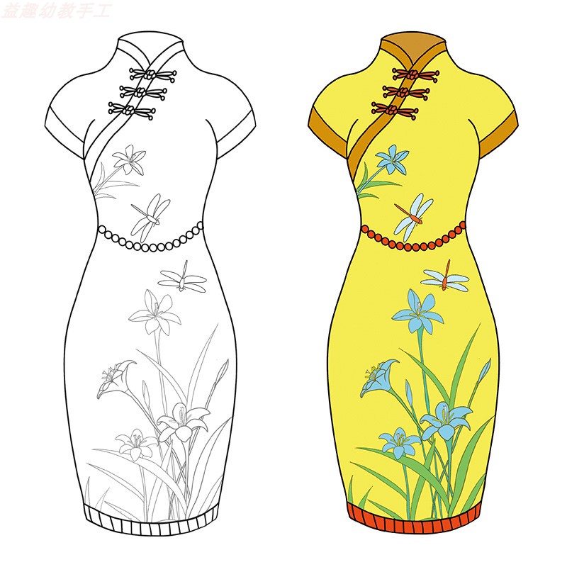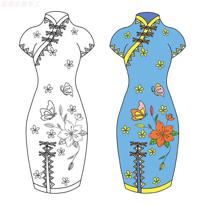 卡纸线稿空白旗袍花瓶汉服儿童绘画涂鸦美术材料教室装饰空中吊饰