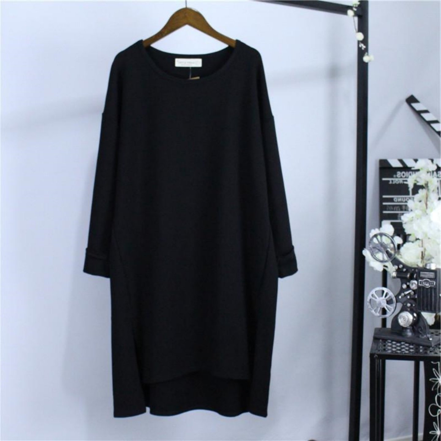 胖MM300斤特大码纯色简约风中长款长袖女装秋季休闲圆领打底衫T恤