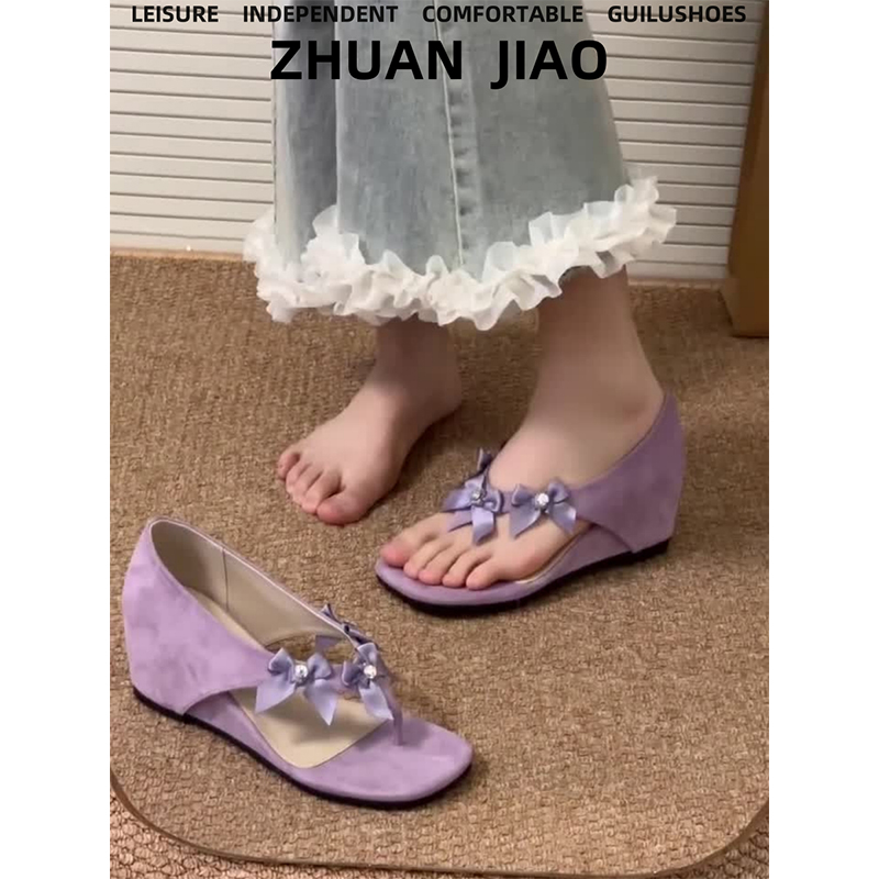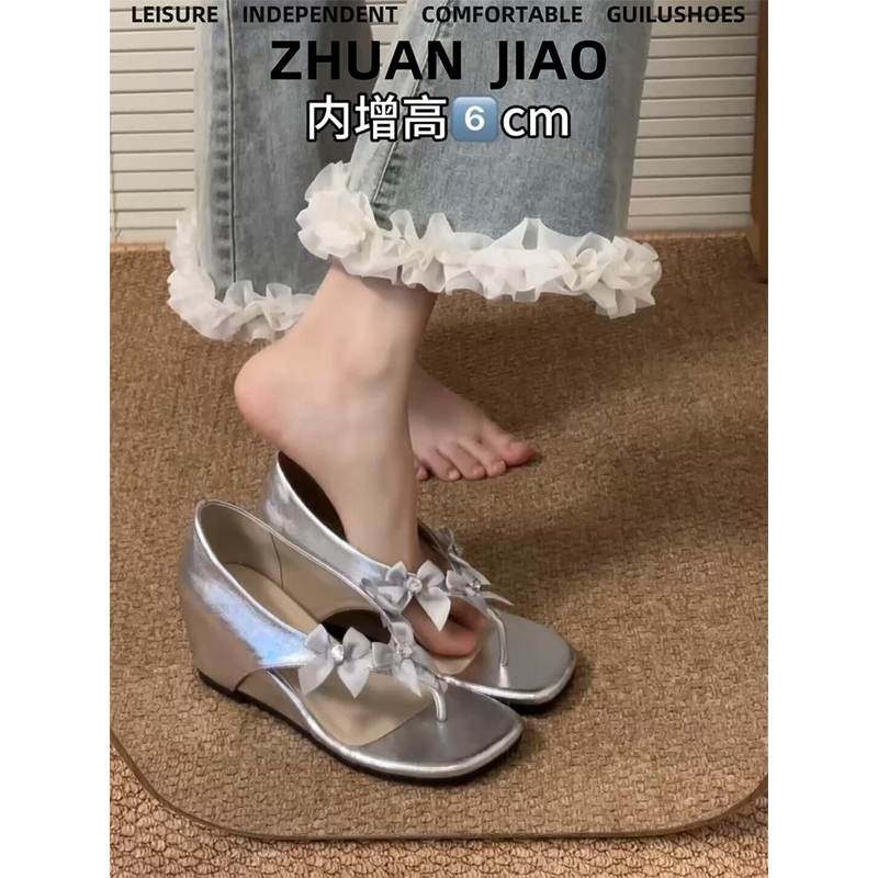 羊皮版!内增高6cm人字夹趾凉鞋女夏外穿浅口单鞋法式高跟凉拖鞋