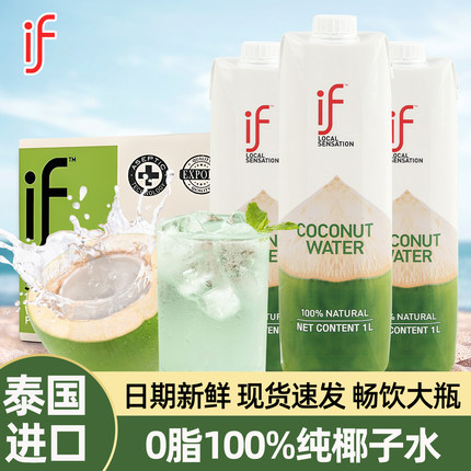 泰国进口if纯椰子水1L瓶快速补水饮料0添加含电解质夏季果汁正品
