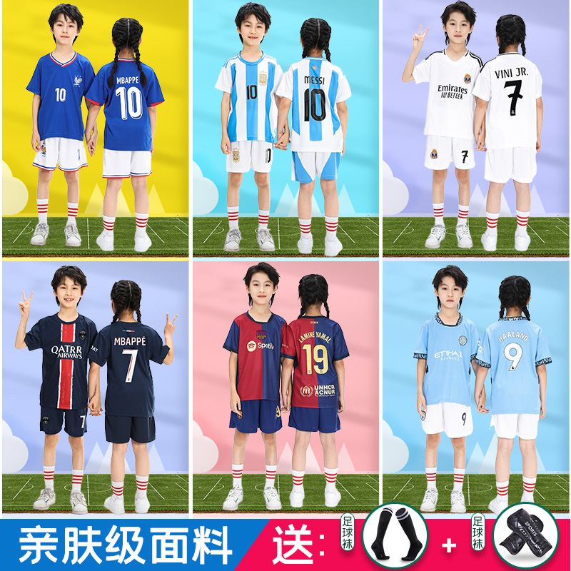儿童足球服套装男童女孩运动训练服c罗巴西内马尔阿根廷梅西球衣