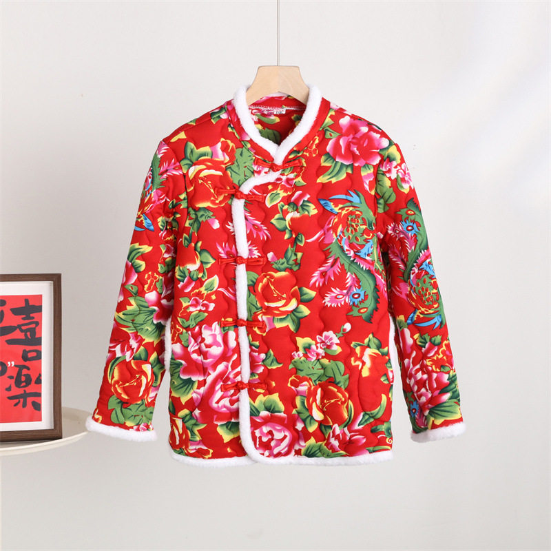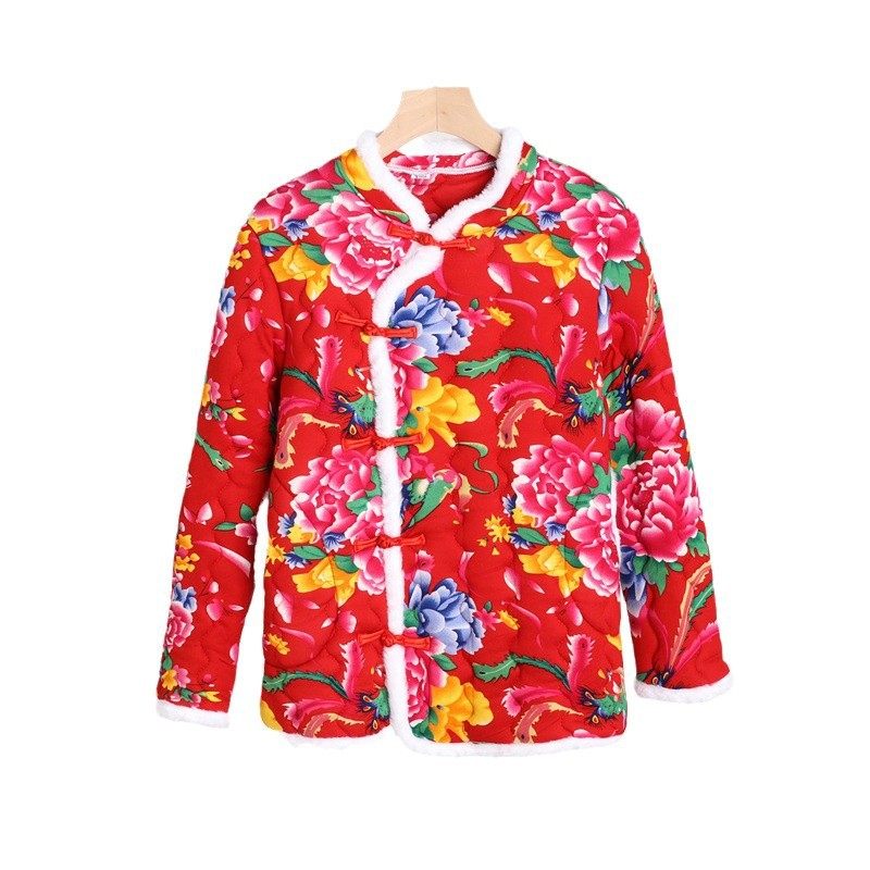 网红爆款国风东北大花棉袄冬季大码盘扣加厚棉服旗袍保暖外套上衣