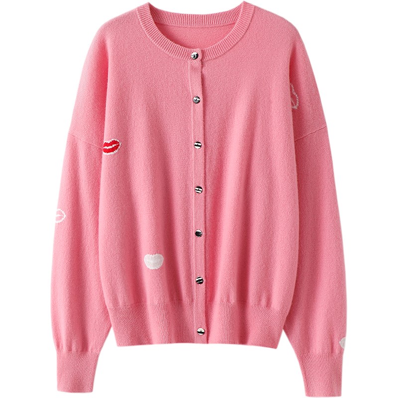惊艳!简直太好看了!圆领羊绒开衫女纯羊绒毛衣针织开衫外套宽松