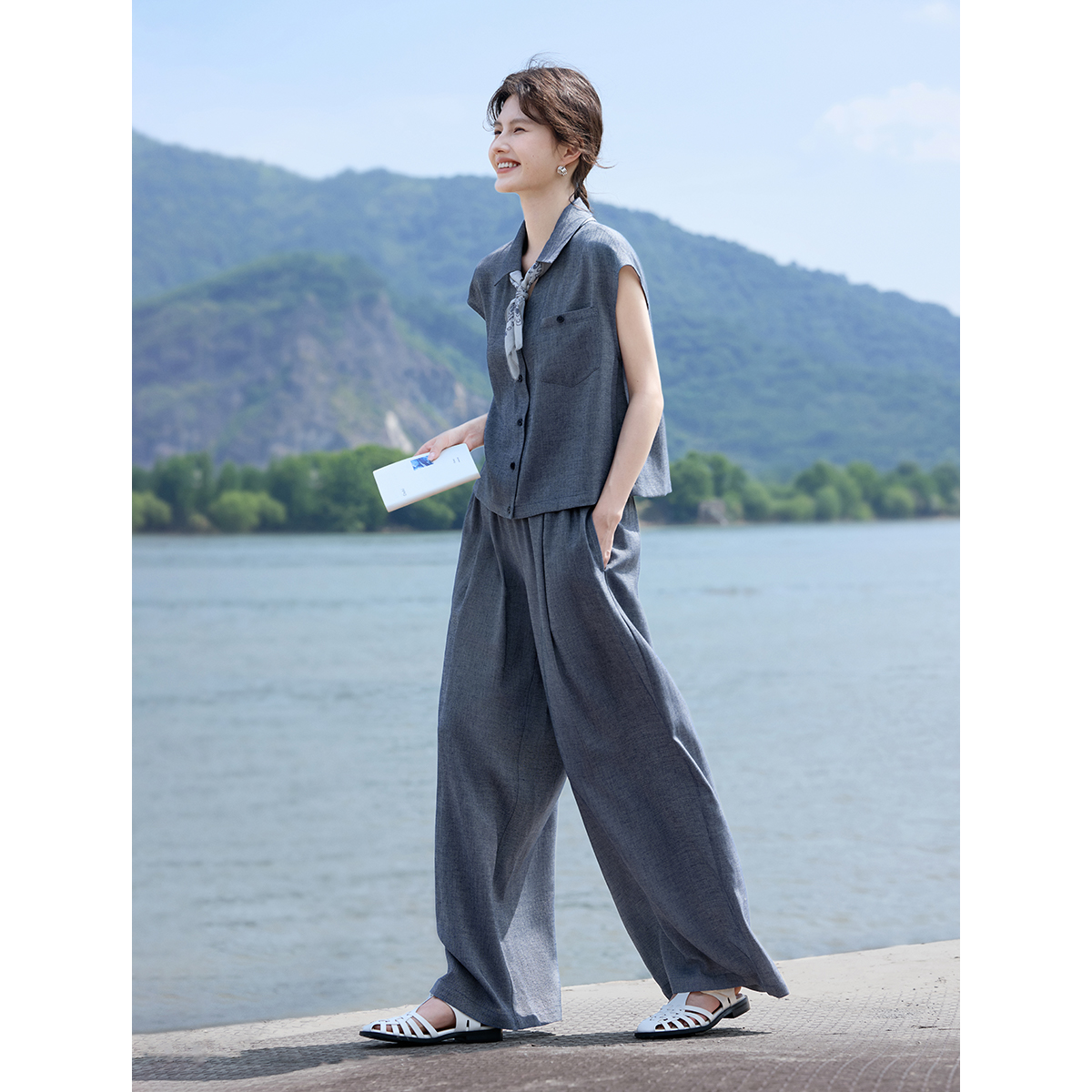XWI欣未含亚麻莱赛尔仿牛仔衬衫套装女夏季凉爽松弛感穿搭一整套