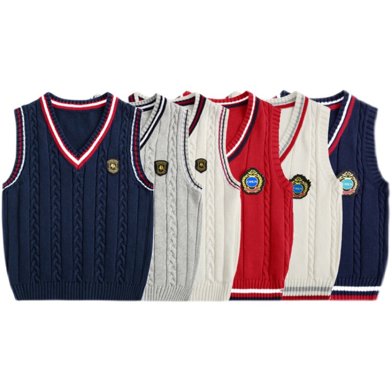 男童马甲春秋儿童毛线背心女童学院风毛衣马甲韩版中大童针织薄款