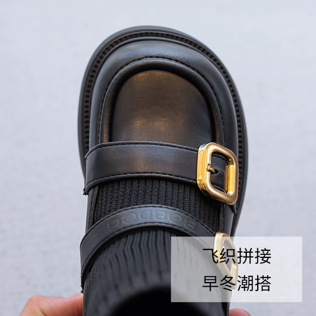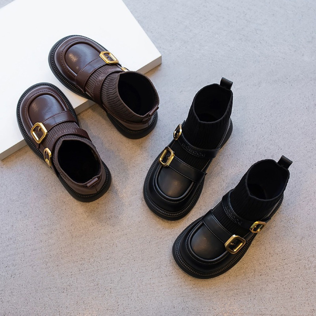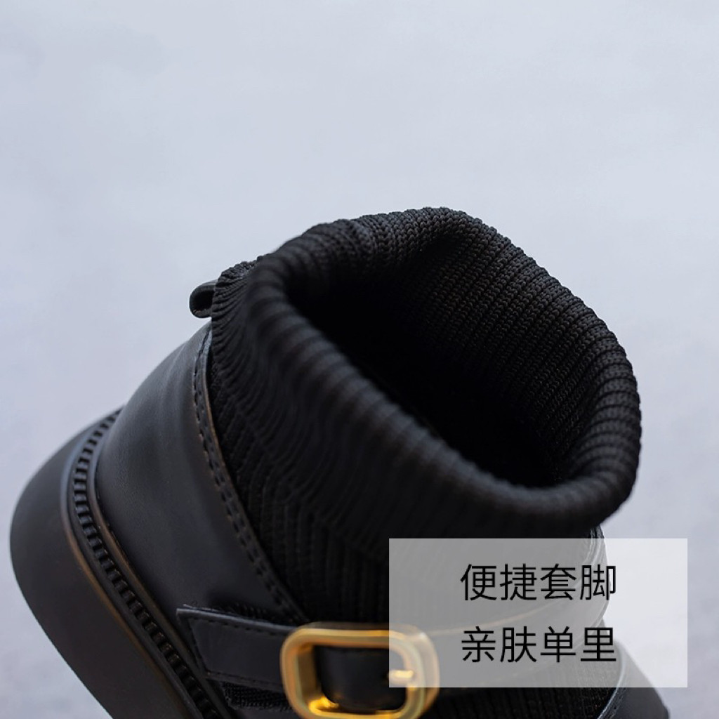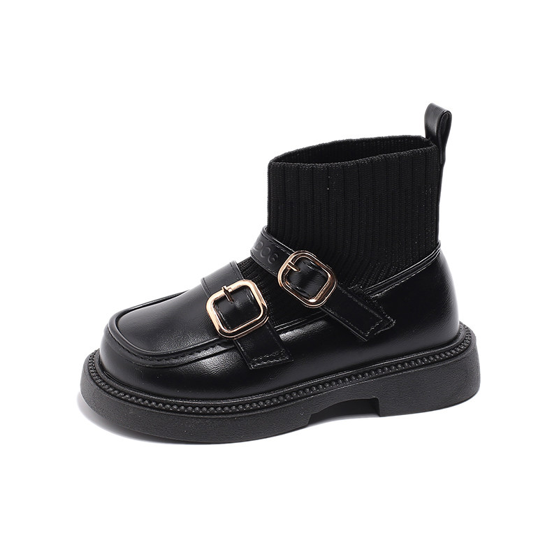 巴布豆真皮女童鞋儿童马丁靴2025秋冬季新款公主短靴加绒皮靴棉鞋