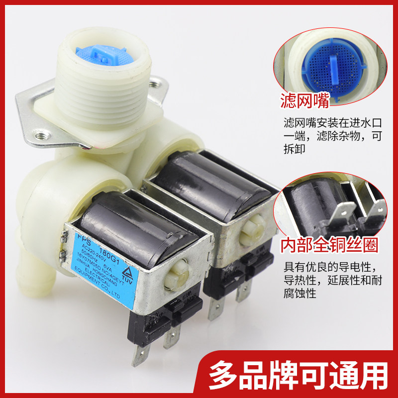 适用海尔三洋松下格兰仕滚筒洗衣机进水阀双头电磁阀FPS180G1