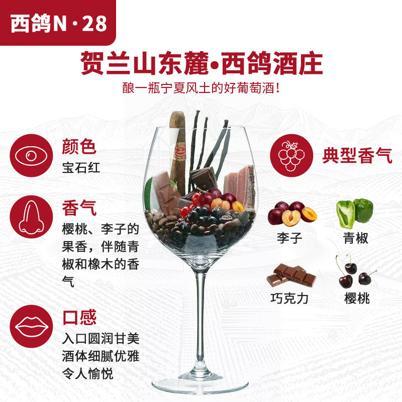 西鸽酒庄N28宁夏贺兰山赤霞珠干红葡萄酒红酒礼盒750ml整箱6支装