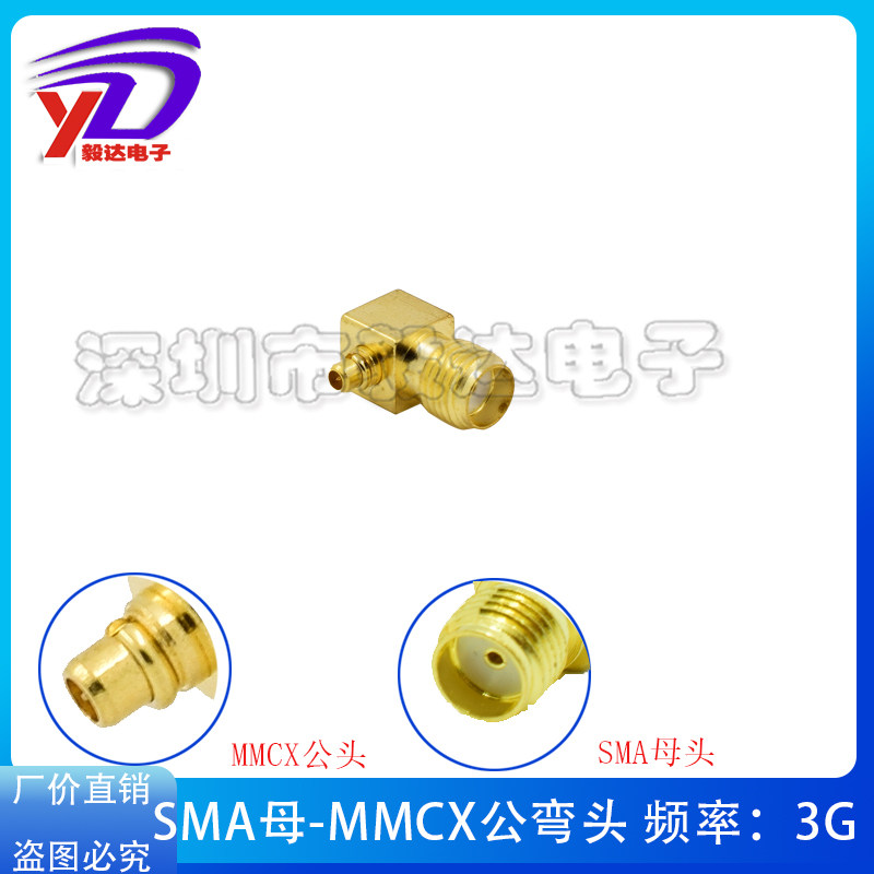 射频连接器SMA/MMCX-JKSMA公转MMCX母头转接天线测试头90度弯头4G