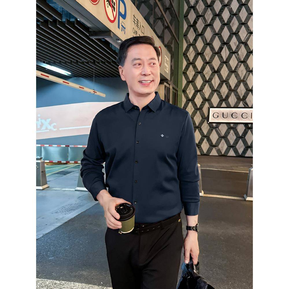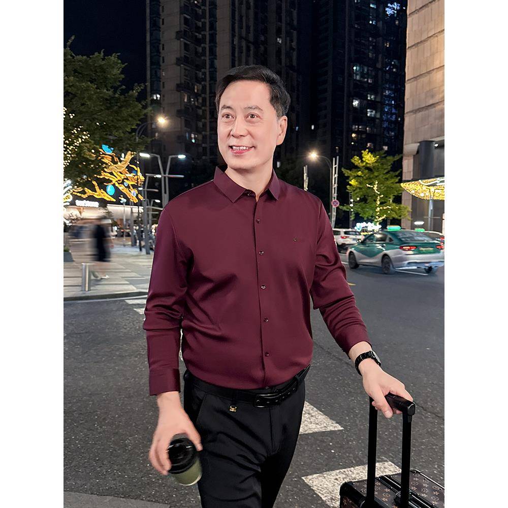 保暖衬衫中老年男士长袖加绒加厚秋冬季新款商务休闲无痕爸爸衬衣