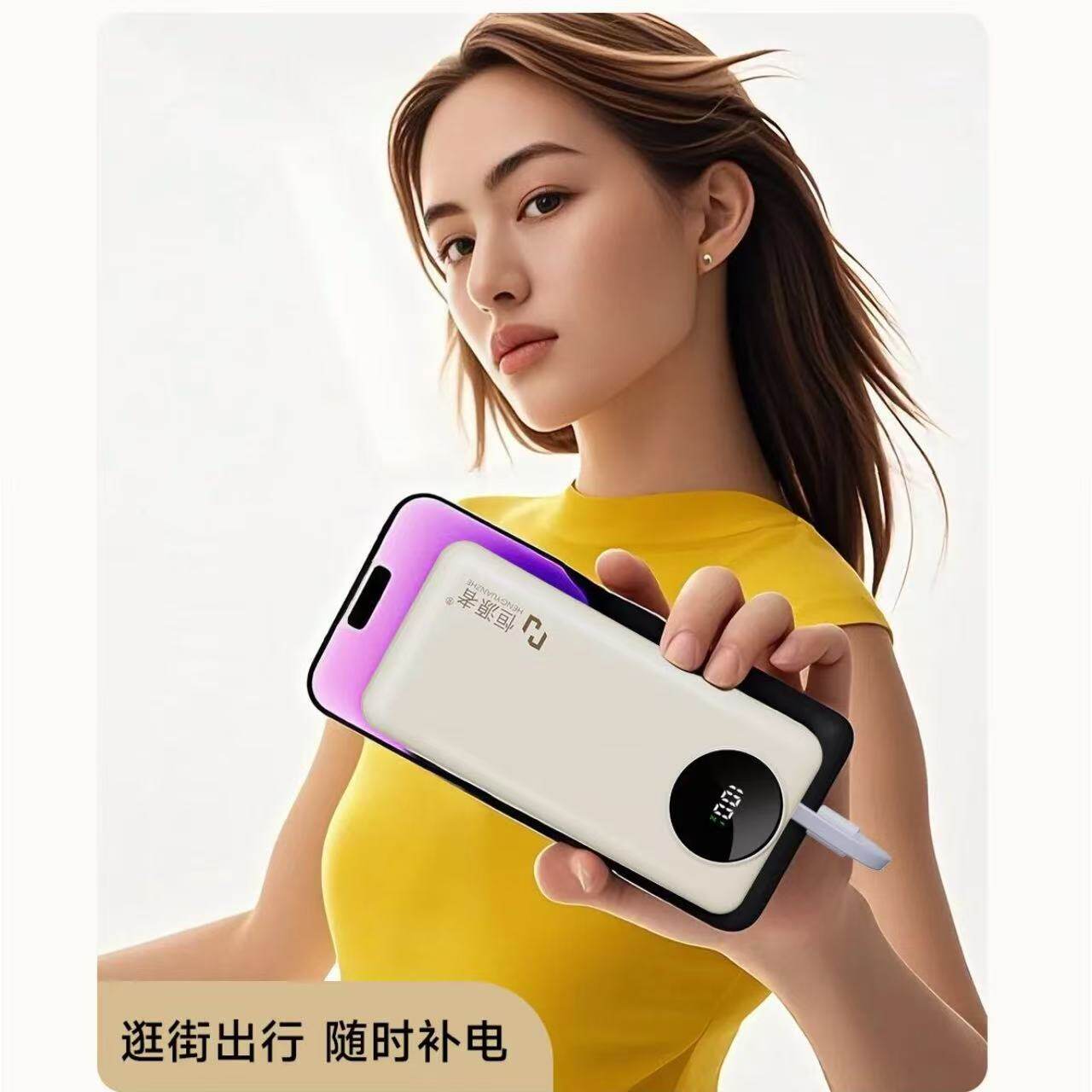【3C认证】恒源者2026新款20000毫安自带线充电宝双向超级快充移动电源便携大容量耐用移动电源适用苹果小米