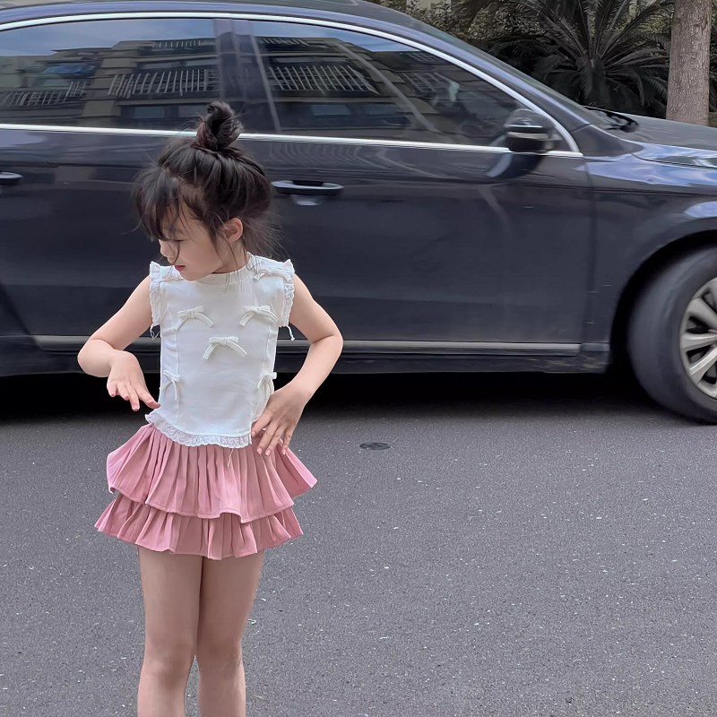 女童高腰半身裙夏季2024新款显瘦百搭小女孩学院风蛋糕蓬蓬短裙子
