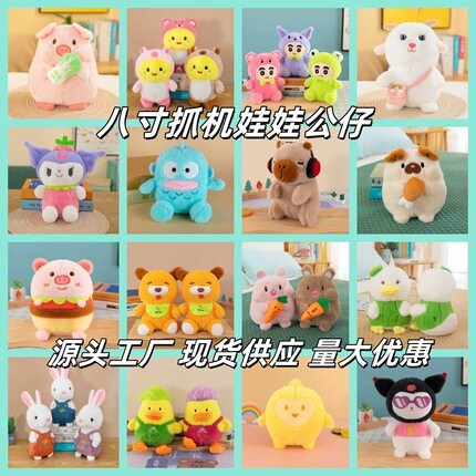新款跨境8寸抓机娃娃公仔地摊套圈毛绒玩具活动礼品抛洒可爱玩偶