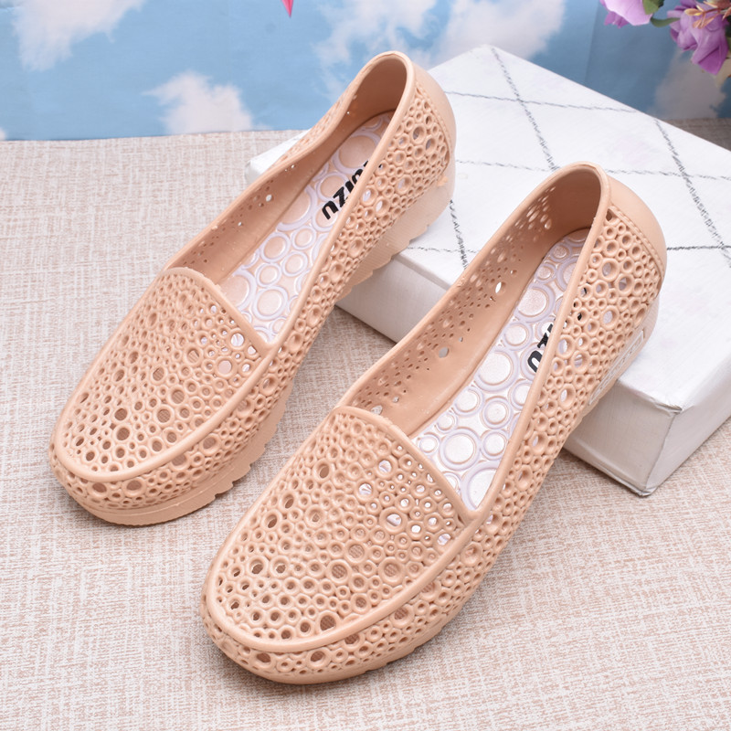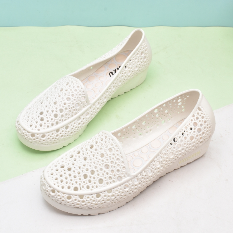 夏季坡跟防滑白色塑料镂空妈妈鞋
