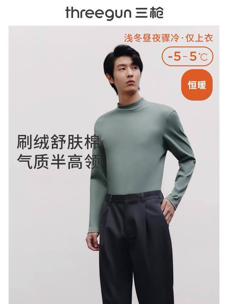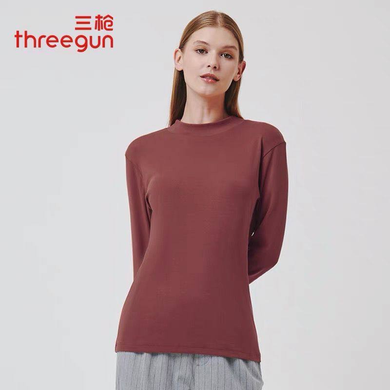三枪内衣男女保暖衣纯棉中高领打底衫半高领全棉毛衫单件上衣秋衣