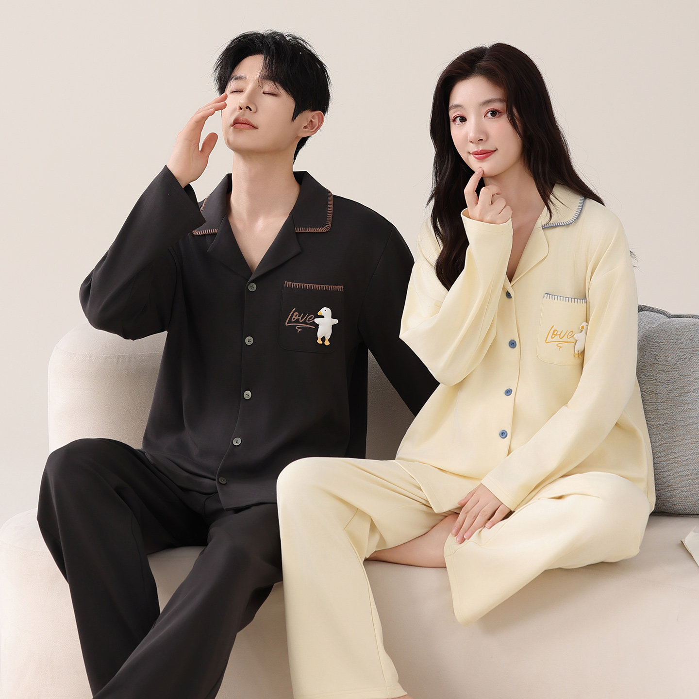 情侣睡衣春秋款高级感纯棉长袖长裤2025新款休闲男女士家居服套装