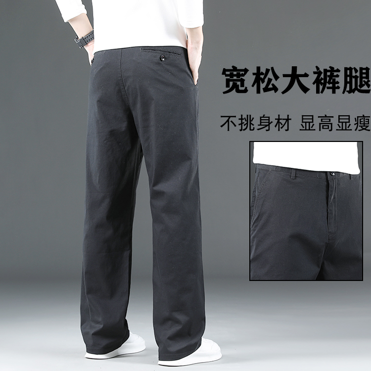 休闲裤男厚款宽松直筒中年大码裤子男款春秋2025新款纯棉男士长裤