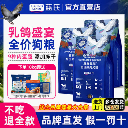 蓝氏真鲜全价乳鸽冻干狗粮大中小型犬成幼犬粮通用囤货装10kg营养