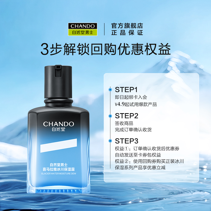 「会员专享」自然堂男士 4.9元起尝鲜保湿系列 享专属回购券