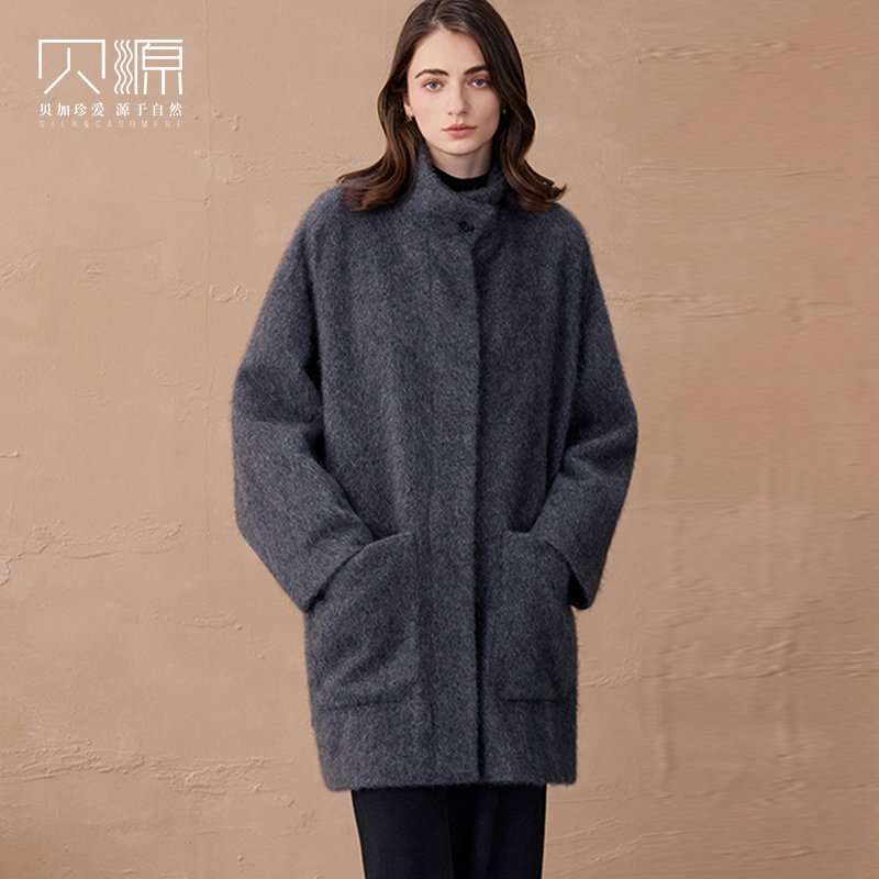 贝源高端灰色牦牛绒拉绒大衣女2025新款小个子中长款加厚毛呢外套