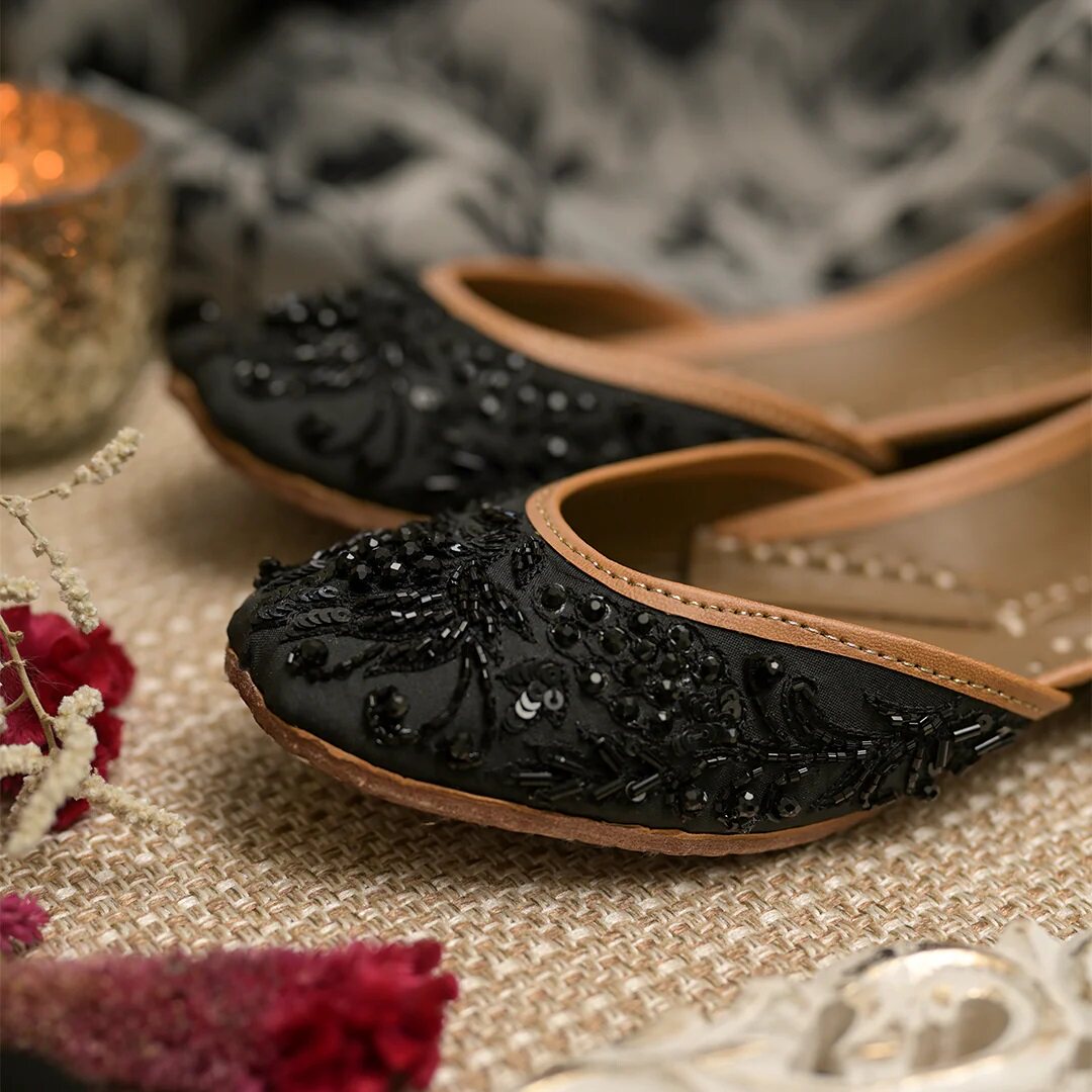 暗夜 I 纯黑精致暗黑风搭配黑色礼服全手工钉珠印度鞋芭蕾鞋