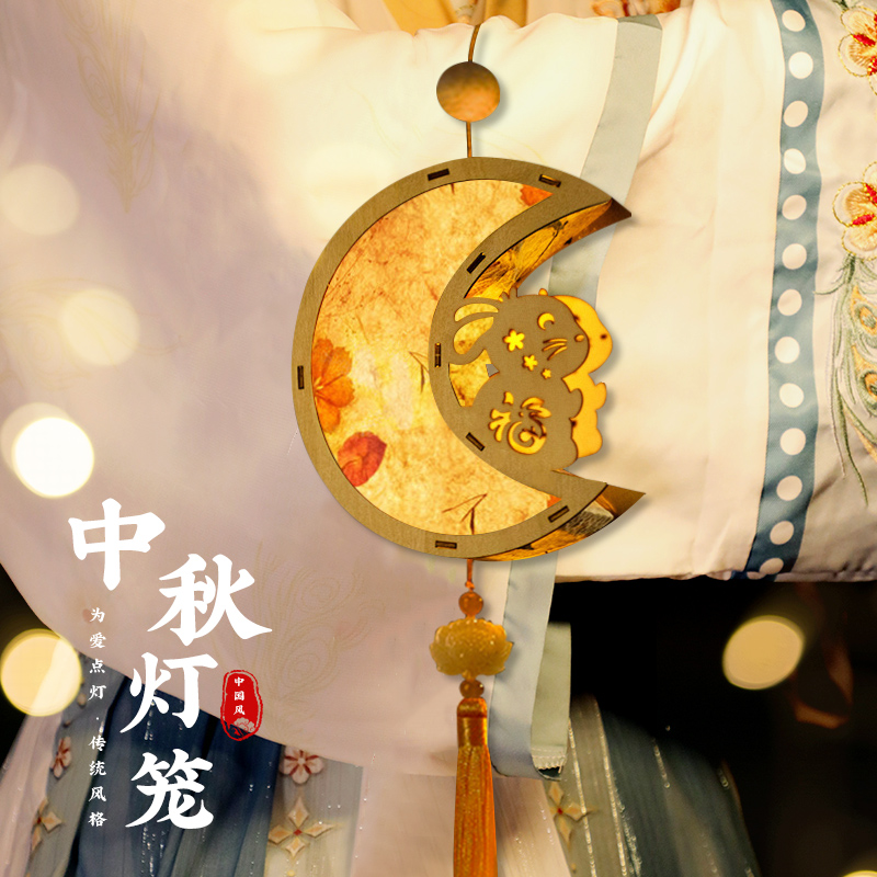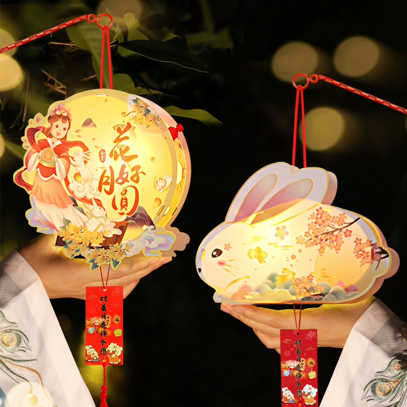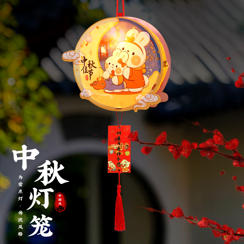 新年元宵灯笼新款手提发光diy材料包兔子灯笼纸质古风花灯装饰