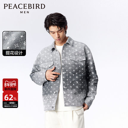 太平鸟男装立体提花渐变牛仔夹克秋冬季满印潮流休闲茄克外套