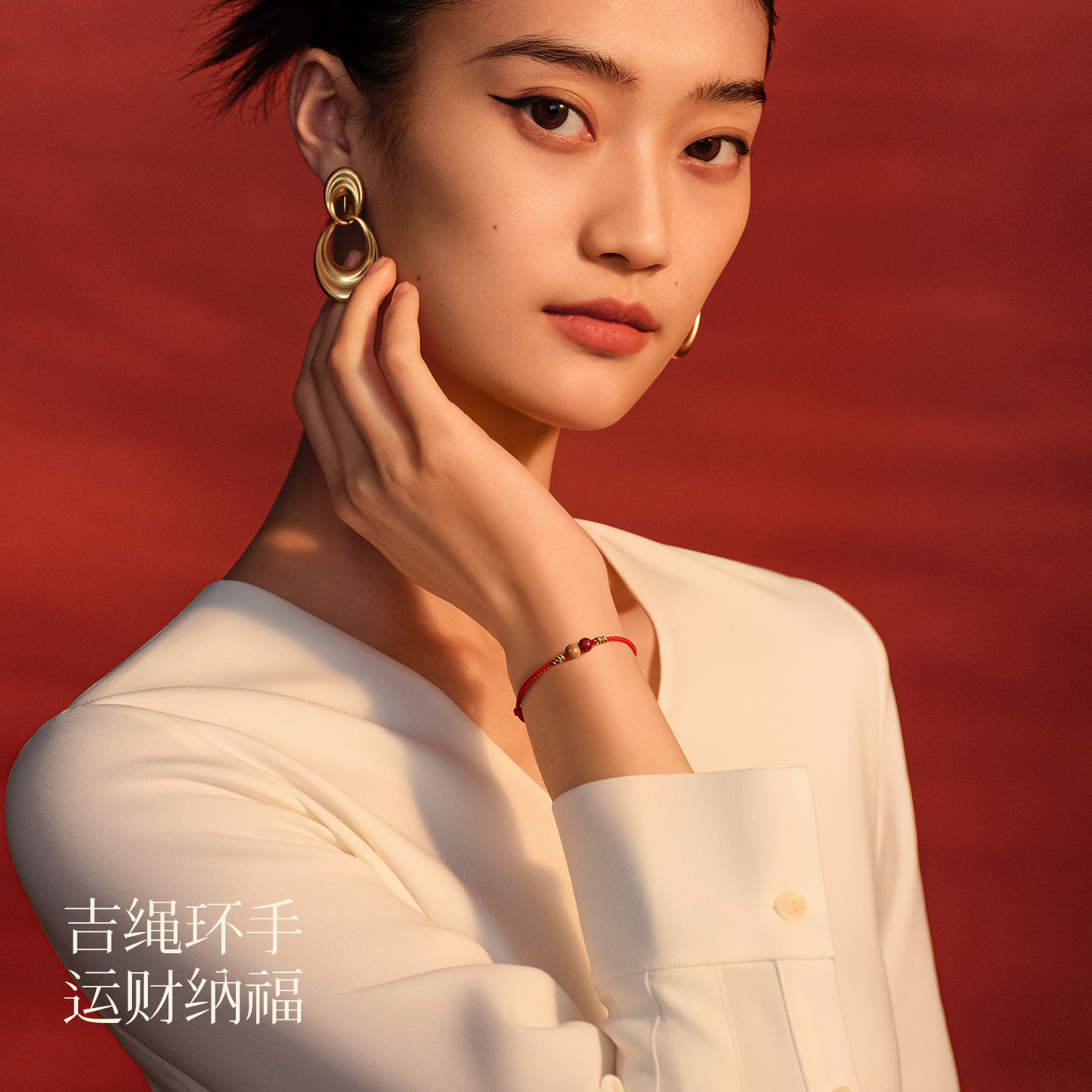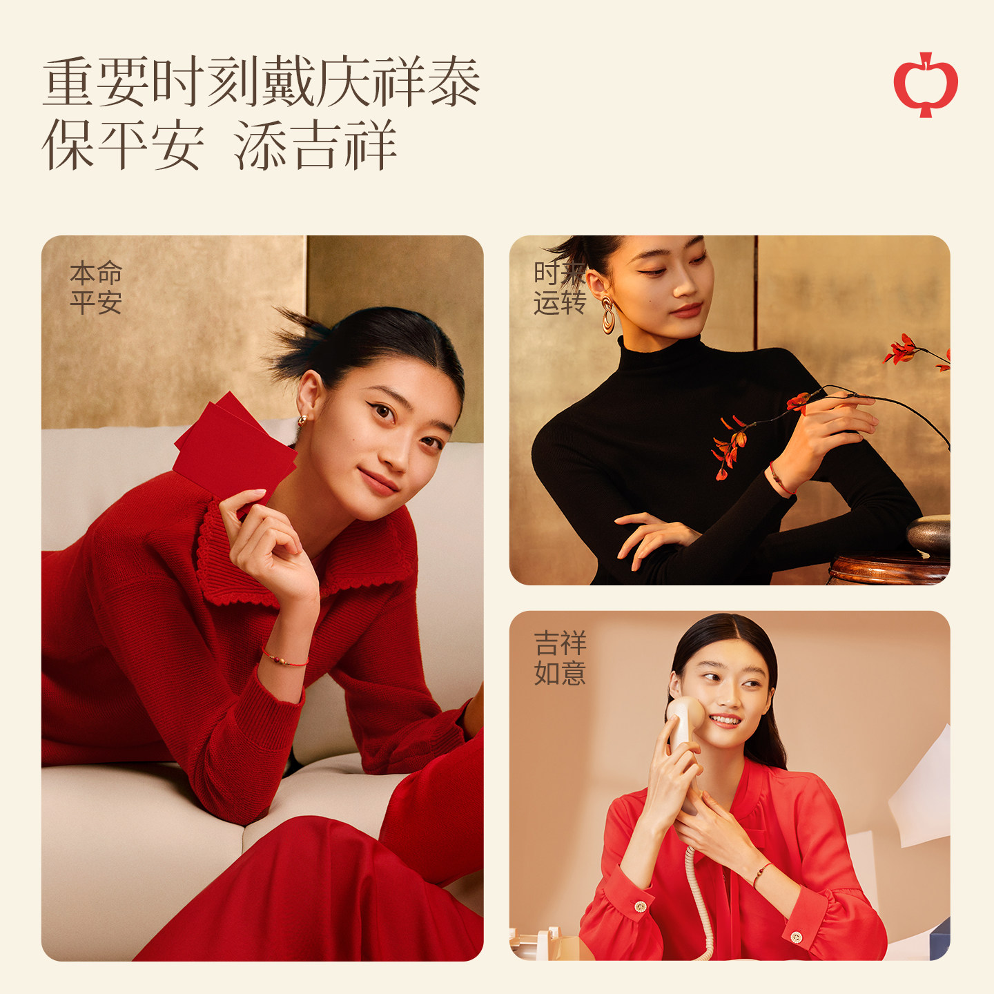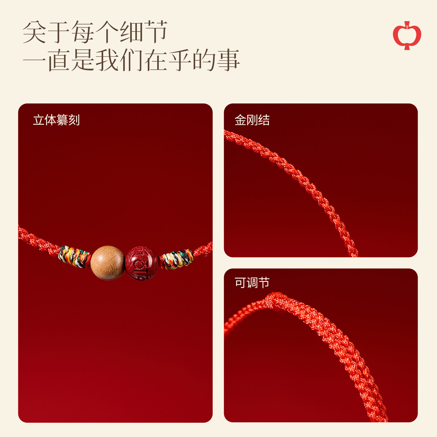 庆祥泰桃木朱砂本命年红绳手链男女款2026马年编织手绳儿童护身符