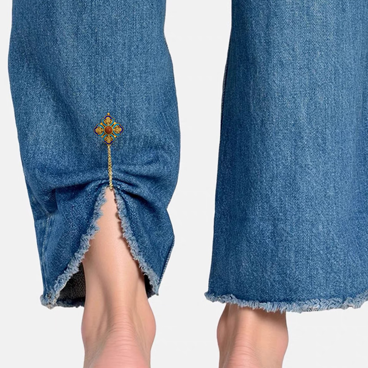 复古四瓣花裤脚防拖地神器t恤太长改短磁吸扣可调节衣袖收紧固定