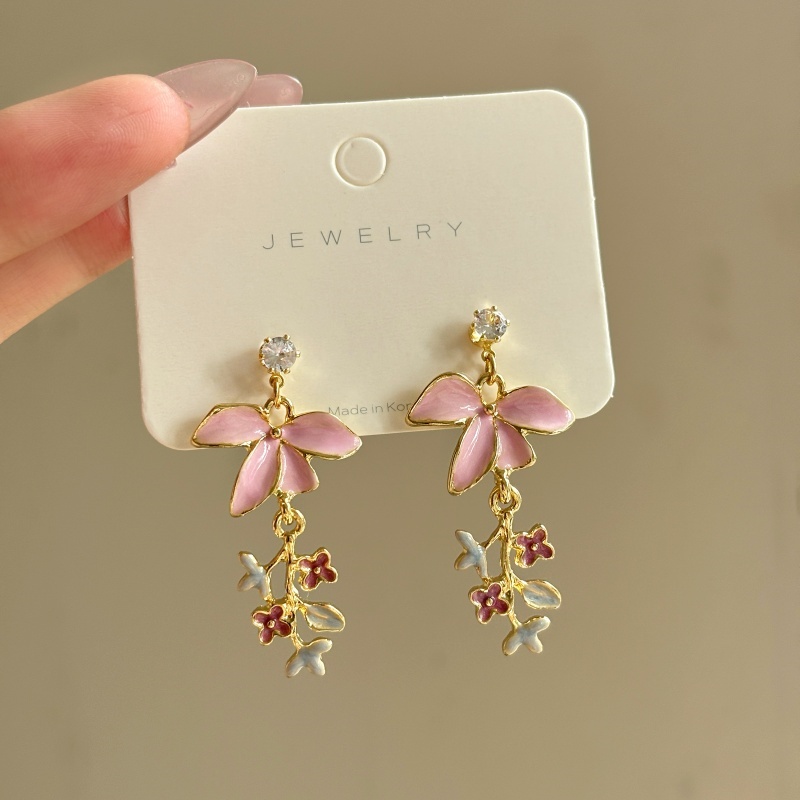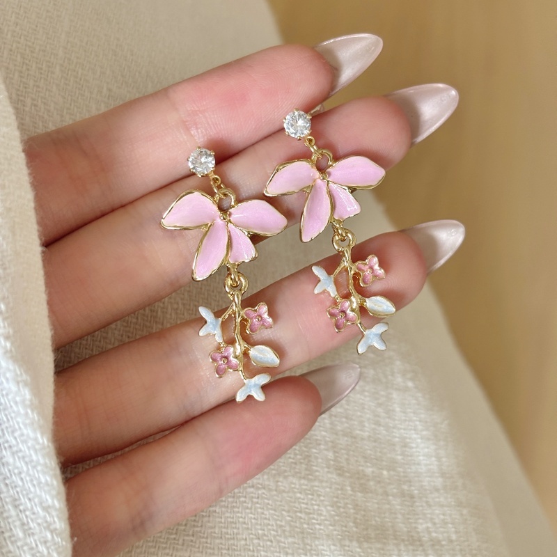 法式甜美滴釉彩色花朵锆石耳环女超仙氛围感耳钉轻奢高级感耳饰品