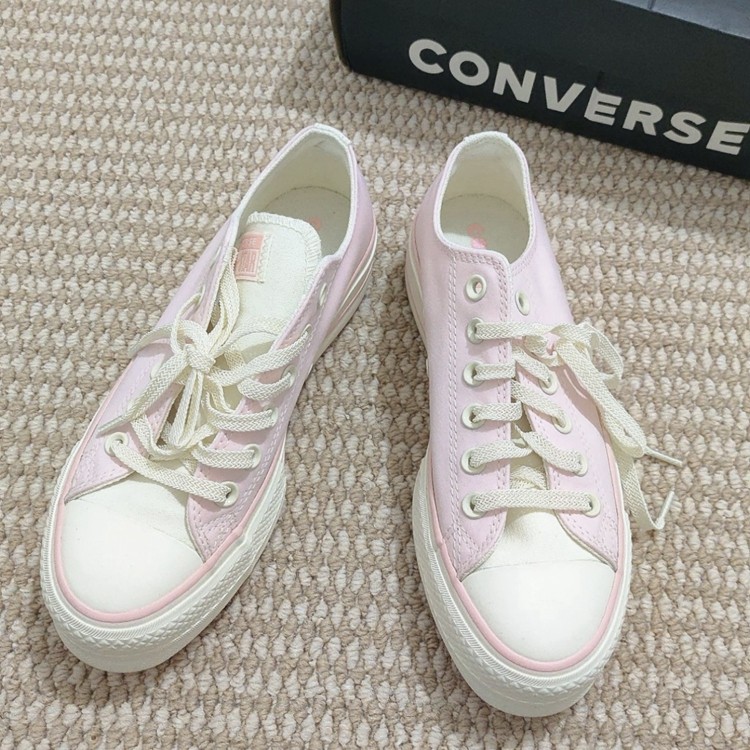 CONVERSE匡威 All Star Lift 女粉红缎面感低帮厚底帆布鞋A10072C