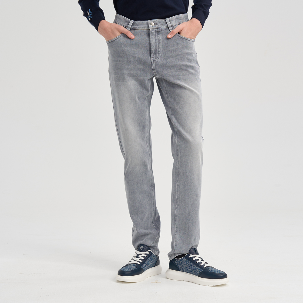 RARE威雅男裤 2025秋冬新款长裤经典时尚男士裤子灰色水洗牛仔裤