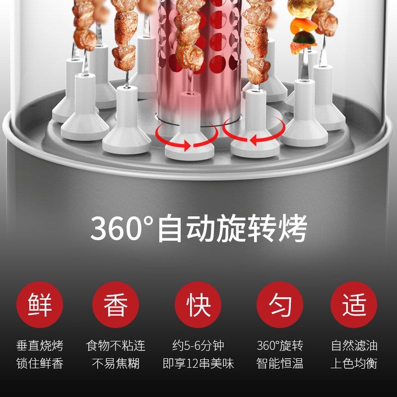利仁J电烧烤炉烤串机家用自动旋转室内小型无烟烤羊肉机烧烤杯